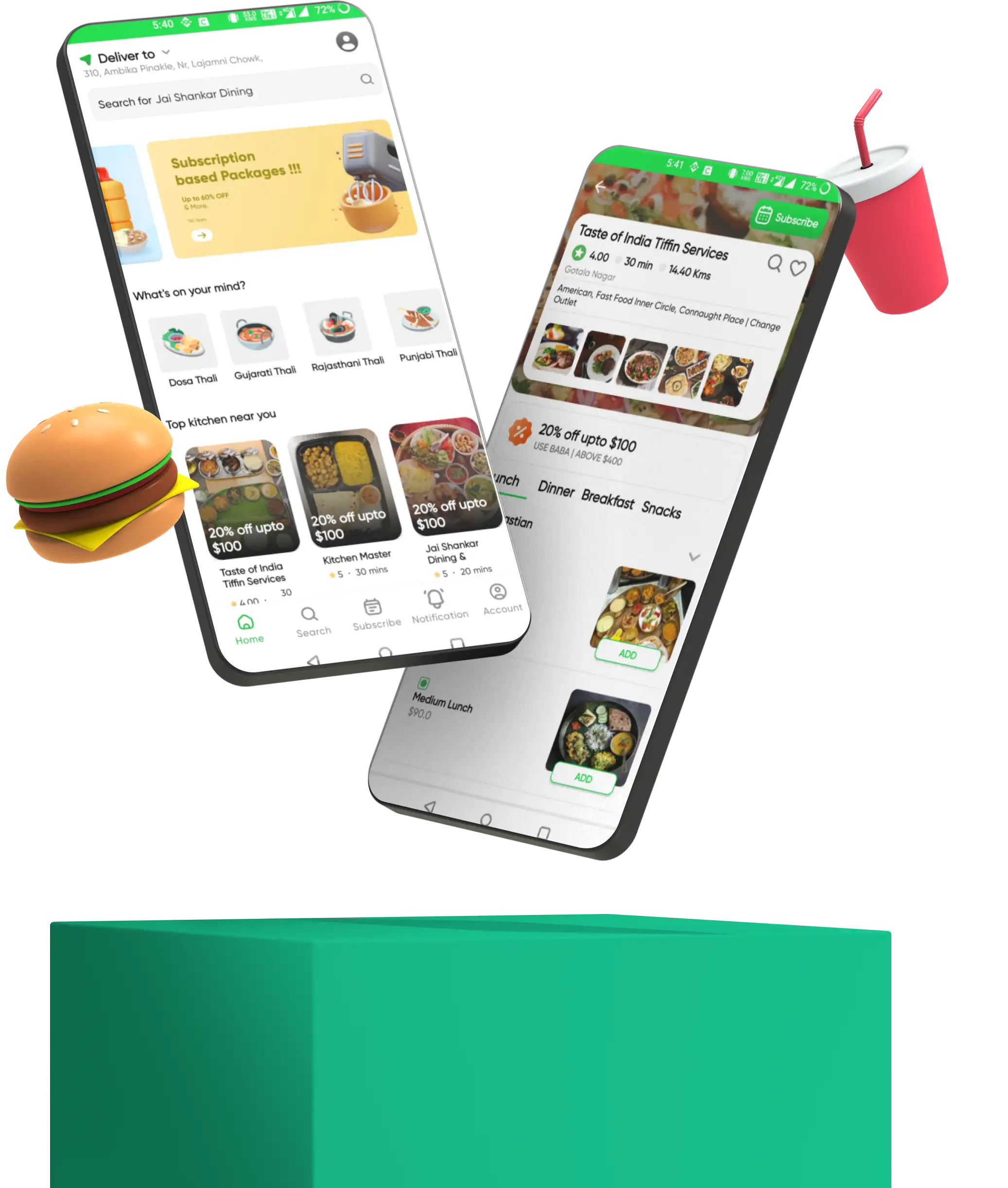 Choose chef or kitchen based on location, cuisine choices, timings and more from a beautiful listing of our tiffin delivery script.